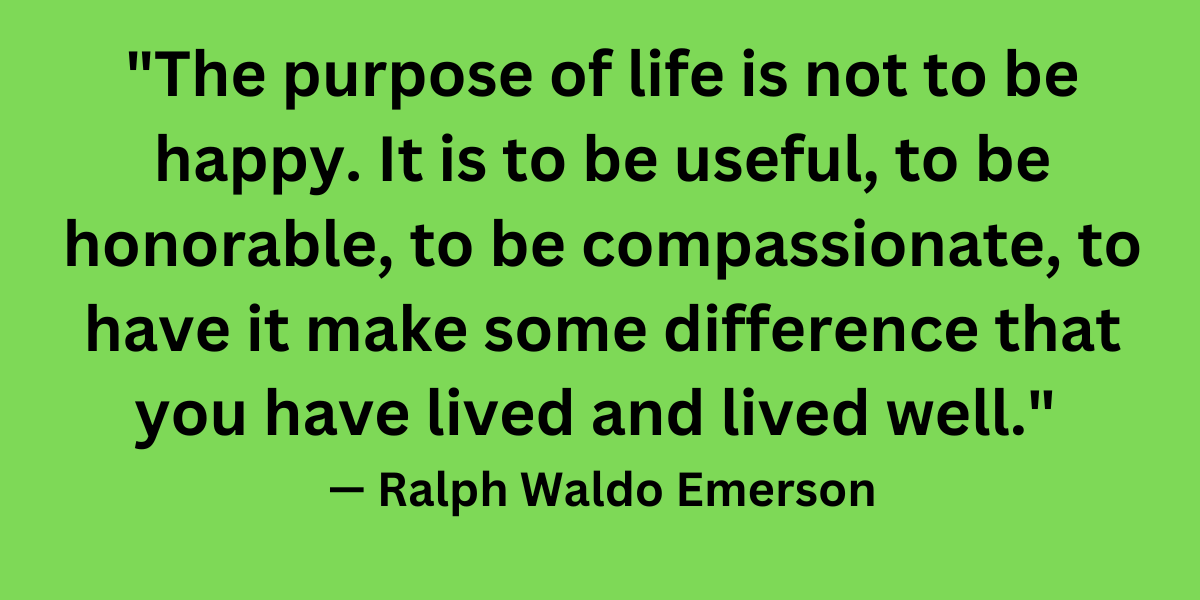 "The purpose of life is not to be happy. It is to be useful, to be honorable, to be compassionate, to have it make some difference that you have lived and lived well."